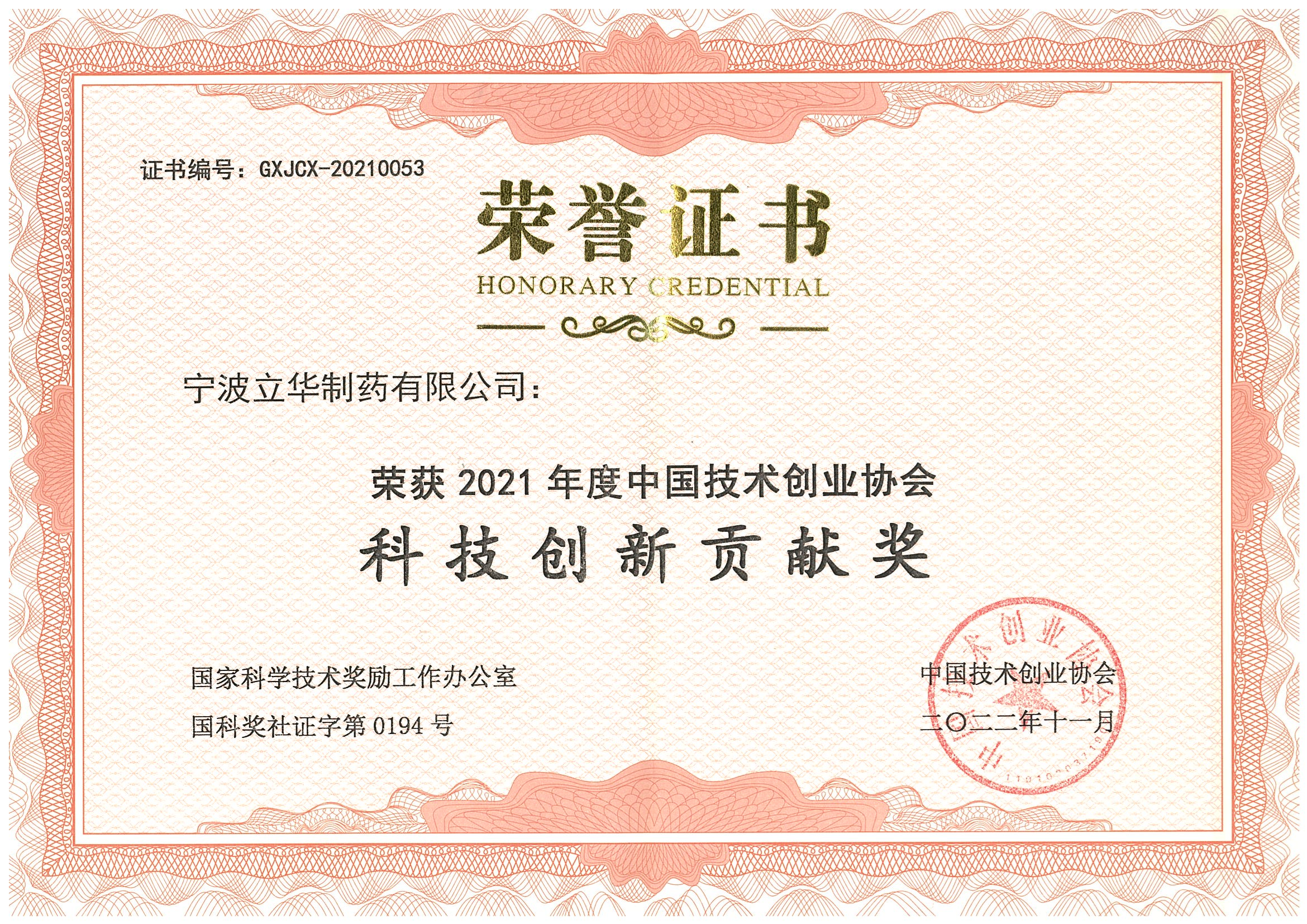 寧波立華制藥有限公司憑借不斷上升的行業影響力、專業的人才隊伍及出色的科技創新能力,在中國技術創業協會組辦的評選活動中成功斬獲“科技創新貢獻獎”殊榮。近日,立華制藥喜獲“2021年度中國技術創業協會科技創業貢獻獎”證書。中國技術創業協會組辦“科技創業貢獻獎”評選活動,旨在全面落實習近平新時代中國特色社會主義思想,深入落實黨中央、國務院關于科技創新創業的決策部署,宣傳優秀企業科技創新創業典范,發揮其引領帶動作用,弘揚創新創業文化,進一步激活全社會科技創新創業活力。“科技創業貢獻獎”依照《國家科學技術獎勵條…
